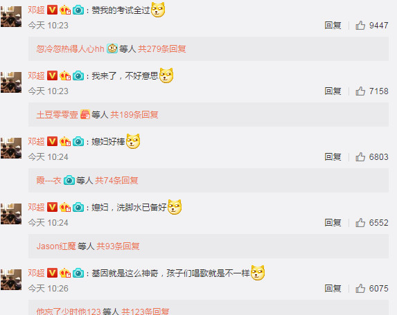 等等、花花的歌聲可愛,配上一家四口出游的照片,鄧超在留言串頻頻寫道“唱得好嗎”、“我拍的MV棒嗎”,還透露自己其實也唱了一個版本,吸引大批網友敲碗求分享。他還到孫儷的微博夸獎兒女“基因就是這么神奇,孩子們唱歌就是不一樣”、“媳婦好棒”。
