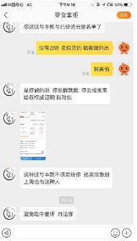 更令黃小姐惱怒的,是商家惡劣的服務態度�!罢埬銈兂鼍哌M貨單和署理證明�!痹邳S小姐同客服聯絡交流后,這家名為“零食掌柜”的店肆客服居然回復說:“呵呵,原來是找麻煩的,要么原封退貨給我,能夠退錢,想翻開白吃,你想多了�!鄙碳依涑盁嶂S的態度,令她氣不打一處來。“首先,我并不缺這42元,別的,關于這樣態度惡劣的商家,平臺是怎樣監管的?”沒想到,商家卻不依不饒,竟“回懟”稱:“你這賬號手機號現已進云黑名單了,本就不該賣給你這種賬號�!�